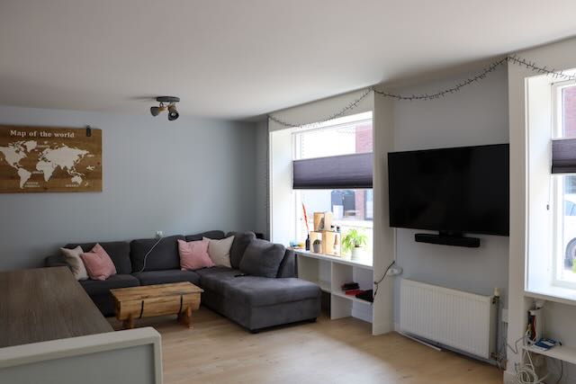 De woonkamer bevat een 55inch 4K tv met verschillende beschikbare apps als: NPO, Videoland, Netflix, Pathé thuis, Disney+, NLZiet etc. In de woonkamer vind je naast de televisie ook de eetkamertafel, zit hangmat en verschillende kasten om spullen in op te bergen. De gordijnen zijn daarbij naar eigen wens en hoogte in te stellen.